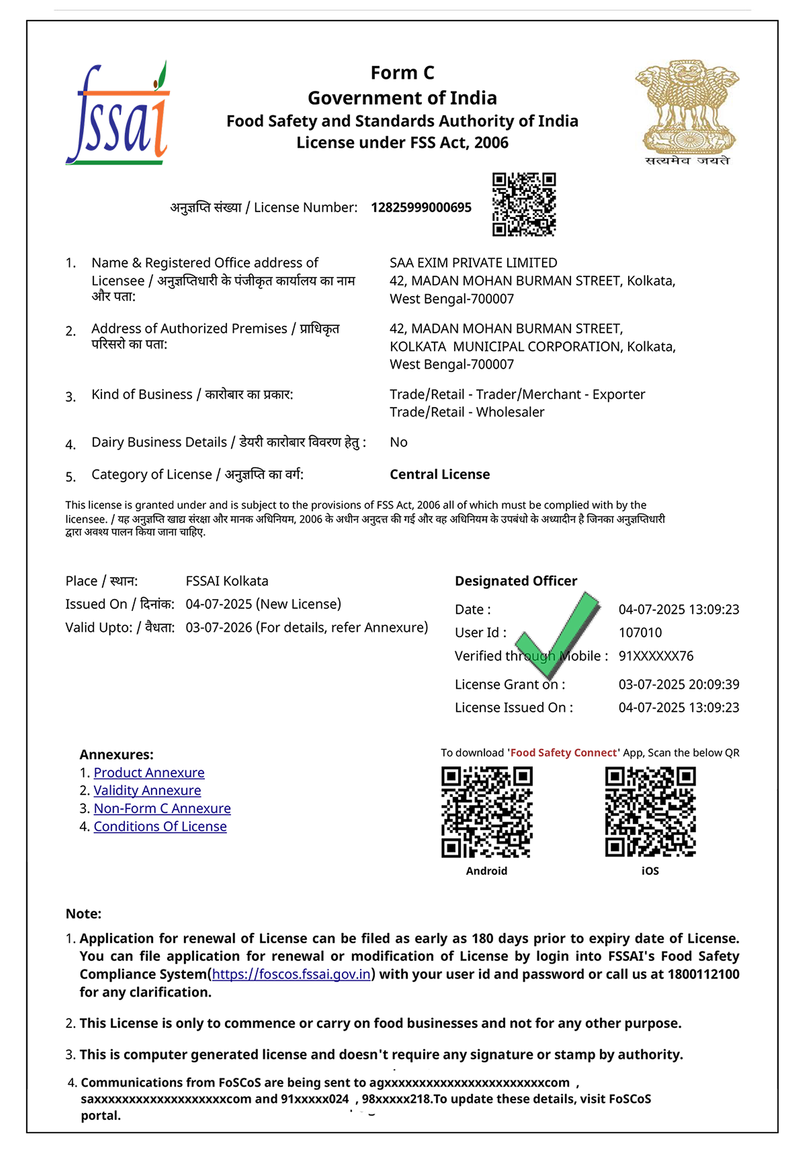 FSSAI LICENSE